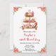Cette invitation d'anniversaire élégante et festive comprend un stand de gâteaux avec des biscuits de pain d'épices, des macarons, des bonbons, du cacao chaud et une théière. Dans les coins sont de belles fleurs de poinsettia rouges. Le texte combine écriture manuscrite et polices sans serif pour un look élégant et moderne. C'est parfait pour un brunch de Noël d'anniversaire ou une fête du thé.