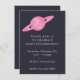 Organisez-vous une fête sur le thème de l'espace ? Cette invitation minimaliste moderne pourrait être exactement ce que vous cherchez. Elle présente une illustration aquarelle mignonne de Saturne en rose sur un fond bleu marine foncé (la couleur de fond peut être modifiée) avec les détails de votre fête.