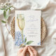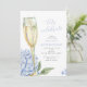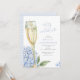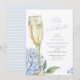 Ce beau design présente des fleurs d'hortensia bleu, un verre à champagne doré et votre texte personnalisé. Utilisez le formulaire de modèle pour ajouter vos informations.