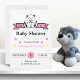Ours en peluche avec bannière rose sur fond blanc, invitation à une baby shower pour fille. La carte est entièrement personnalisable, vous pouvez modifier le texte et les couleurs du texte et du design, même la couleur de fond peut être personnalisée. Elle présente une typographie simple et contemporaine ainsi que des accents de cercle pour une réunion amusante et décontractée célébrant ce moment spécial pour la future maman. Si vous avez besoin d'aide pour personnaliser cette carte, contactez le designer à l'adresse ArtByLiz@gmx.com et elle sera personnalisée pour vous sans frais supplémentaires.