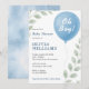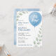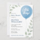 Faire-part de Baby Shower Eucalyptus "Oh Boy" | Invitation Moderne pour Bébé Garçon avec Feuillage et Ballons Bleus
