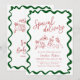 Cette invitation de fête prénatale italienne présente des illustrations de pizza et de pâtes dessinées à la main. Le thème moderne "Livraison Spéciale" est parfait pour une fête Sprinkle amusante.