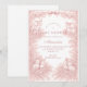 Un design de baby shower élégant et doux mettant en vedette de délicates illustrations de toile rose blush de style vintage. Le cadre est orné de charmants agneaux, de florales, d'accents célestes et d'un nœud romantique, créant une esthétique intemporelle de nurserie de livre de contes. Parfait pour une célébration classique et féminine avec une atmosphère raffinée de pièce d'héritage. La palette rose douce et le style de gravure détaillé donnent au design une atmosphère sophistiquée mais douce qui convient parfaitement aux baby showers traditionnelles ou de style cottagecore.