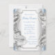 Invitation de baby shower vintage garçon gris argenté et bleu bébé. Cette invitation de baby shower vintage grise et bleue est facilement personnalisable pour votre événement en choisissant simplement le bouton "Personnalisez-le !" pour commencer à ajouter vos détails d'événement, style de police, taille et couleur de police, et libellé. Veuillez noter que tous les autocollants, cartes et modèles d'invitation que vous trouverez sur Zazzle sont des graphiques imprimés sans véritables bijoux, rubans, reliefs, gaufrages ou pièces ajoutées.