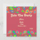 Motif paisley coloré avec rouge, vert néon, droplets bleus.Carte d'invitation rétro jouable avec touche orientale.Idéal pour les fêtes rétro, anniversaires, fêtes ou pour toute autre occasion joyeuse.Design Modèle par Alma Wad.Customisez les deux côtés maintenant avec les détails de votre propre fête/événement /faire-part.