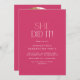 Cette moderne fete rose elle l'a fait l'invitation de la fête de graduation d'arc photo est parfait pour une grande fête moderne pour elle. Le design se compose d'élégantes typographies de boho avec une touche de style sophistiqué dans le rose chaud clair et féminin. Personnalisez le dos de votre grand invitation de fête avec une photo du diplômé, du nom, de l'école et de l'année scolaire.