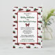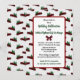 Fêtes de Noël entièrement personnalisables et invitations échange cadeaux d'éléphants blancs. Le texte peut facilement être modifié. Couleurs rustiques noir, blanc, rouge et vert avec des détails vintages de camion rouge et d'arbre de Noël.