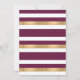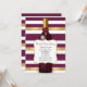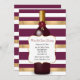 Invitation à une fête sur le thème du vin réalisée dans un motif rayé bordeaux, blanc et or, avec des graphiques d'une grande bouteille de vin rouge. Une zone de texte décorative comporte un texte personnalisé prêt à être personnalisé pour votre événement.