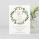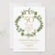 Avec une élégante guirlande de verdure boisée, cette invitation chic et botanique de fête surprise pour les 50 ans de mariage peut être personnalisée avec vos informations spéciales d'anniversaire de mariage en or. Le verso présente une guirlande assortie encadrant les dates d'anniversaire en texte blanc élégant sur fond or. Conçu par Thisisnotme©