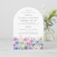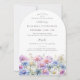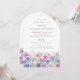D'élégants aquarelles créent une bordure florale au bas de cette invitation d'anniversaire en forme d'arc. Les fleurs mauves pastel, bleu rose et blanc sont la fleur du mois d'anniversaire de septembre, ce qui en fait le thème parfait pour votre anniversaire de septembre.