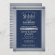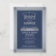Pouvez-vous garder un secret ? Invitez famille et amis à une célébration d'anniversaire de mariage surprise élégante et excitante avec des invitations de fête personnalisées bleu marine et argent. Tout le texte de ce modèle est facile à personnaliser, y compris le message qui dit "Chut ! C'est une SURPRISE". Le design présente une bordure rayée moderne, une typographie art déco vintage classique et une calligraphie script stylée. Veuillez noter que l'argent est imprimé en couleur grise, pas en feuille métallique. Félicitations et Joyeux Anniversaire !