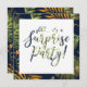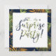 Célébrez votre journée spéciale avec cette invitation de fête surprise tropicale. Ce design présente une typographie élégante avec un motif tropical sur fond bleu marine. Parfait pour une fête de jardin estivale ou une fête dans votre cour arrière. Vous pouvez personnaliser tout le texte au verso pour l'adapter à votre événement.