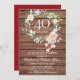 Avec une délicate guirlande de fleurs de greenery aquarelle sur un fond de panneaux de bois rustique, cette invitation chic et botanique pour une fête surprise de 40e anniversaire de mariage peut être personnalisée avec vos informations spéciales d'anniversaire de rubis. Le verso présente une guirlande florale assortie encadrant les dates d'anniversaire en texte blanc élégant sur un fond rouge rubis. Conçu par Thisisnotme©