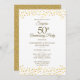 Avec des coeurs d'amour dorés délicats en confettis. Personnalisez avec vos informations spéciales pour la fête surprise des cinquante ans de mariage en lettrage doré chic. Conçu par Thisisnotme©