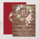 Avec une délicate guirlande de fleurs de greenery aquarelle sur un fond en bois rustique, cette invitation chic et botanique pour une fête surprise de 40e anniversaire de mariage peut être personnalisée avec vos informations spéciales d'anniversaire de rubis. Le verso présente une guirlande florale assortie encadrant les dates d'anniversaire en texte blanc élégant sur un fond rouge rubis. Conçu par Thisisnotme©