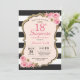 Invitation pour les 18 ans avec des pivoines roses florales pour femmes. Paillettes dorées. Fleurs florales aquarelles rose pâle chic. Rayures noires et blanches. 13ème 15ème 16ème 18ème 20ème 21ème 30ème 40ème 50ème 60ème 70ème 80ème 90ème 100ème, tous âges. Numérique imprimable. Pour une personnalisation supplémentaire, veuillez cliquer sur le bouton "Personnaliser" et utiliser notre outil de conception pour modifier ce modèle.