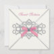 Cartons d'invitation de fête d'anniversaire Sweet 16 rose avec nœud rose et diamants blancs élégants. Ajoutez vos informations à l'avant et à l'arrière de cette belle invitation de fête d'anniversaire blanche et rose en ajoutant les détails de votre événement, le style de police, la taille et la couleur de la police, ainsi que le texte.
