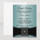 Cartons d'invitation de fête bleu sarcelle et noir damassé pour une sweet sixteen.
