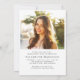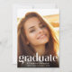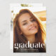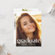 Une invitation chic et élégante à la remise des diplômes, avec la photo de la grade superposée avec "Graduate" en grandes lettres blanches tendance et leur nom, l'école et l'année de classe en simple typographie blanche. Au verso, ajoutez une photo supplémentaire et les détails de votre fête.