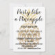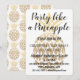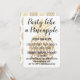 Invitation d'anniversaire de mariage de destination tropicale comme un ananas pour les 25 ans. C'est une invitation parfaite pour un anniversaire de mariage de 25 ans avec un thème de plage aux ananas. L'ananas est en faux papier doré sur fond blanc avec un texte manuscrit superposé. Le texte peut être personnalisé avec vos informations.