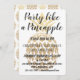 Invitation d'anniversaire de mariage de destination tropicale Fêter comme un Ananas. Ceci est une invitation parfaite pour le cinquantième anniversaire de mariage pour une fête tropicale. L'ananas est en faux papier doré sur fond blanc avec un texte manuscrit superposé. Le texte peut être personnalisé avec vos informations.