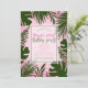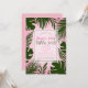 Cartes d'invitation pour fêtes d'anniversaire estivales avec feuilles tropicales vertes roses. Personnalisez pour n'importe quel événement.