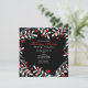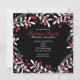 Cartes d'invitation pour soirée festive noire avec baies rouges et feuilles blanches. Personnaliser pour tout événement.