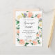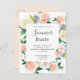 Une invitation estivale en blanc, corail et pêche. Un arrière - plan blanc chic à l'avant. Décoré de grandes fleurs verdoyantes aux couleurs de l'eau, de fleurs blanches, de corail et de pêche. Modèle pour votre nom et informations de fête. Le mot Eté est écrit avec un script de style moderne à la main. Parfait pour une fête d'été en famille, un extérieur, jardin, jardin, barbecue, barbecue, piscine. Retour : arrière - plan rose couleur or. Conseil : Si vous ne voulez pas qu'il ressemble à une carte postale, cliquez sur customiser, allez à l'arrière et retirez le séparateur et le timbre postal.