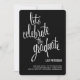 Invitations à la mode et moderne pour "célébrer le diplômé" en police cursive populaire avec l'apparence de lettrage manuel. Affiché en blanc classique sur noir, vous pouvez facilement customiser la couleur arrière - plan pour correspondre à votre schéma ou à votre thème (également disponible avec du texte noir). Le dos vierge de la carte est disponible pour une personnalisation plus poussée ou pour ajouter une photo. Une invitation ou un faire-part unique et moderne à la remise des diplômes qui est une excellente alternative aux invitations de photos.