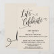 Cette carte simple et élégante a été conçue pour inviter vos amis et votre famille à votre réception de mariage ou à votre soirée organisée quelque temps après la cérémonie de mariage elle-même. En utilisant une police de caractères cursive moderne et tourbillonnante, j'ai créé un graphique de typographie en surimpression qui indique "Célébrons" avec des volutes et des courbes extravagantes. La même police a été utilisée pour créer le mot "amour", qui a été placé, assez grand, au dos. Utilisez les champs de modèle fournis pour mettre à jour le design. Si vous souhaitez personnaliser davantage, déplacer des détails ailleurs, modifier les polices, la couleur de fond ou les tailles, cliquez simplement sur le lien fourni et modifiez le design comme vous le souhaitez. J'ai ajouté toutes les couches séparément et elles sont déverrouillées pour vous donner un contrôle total sur la conception.