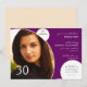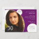 Ce design ludique et moderne est parfait pour vos fêtes d'anniversaire. Votre photo préférée se démarque certainement des autres sur cette carte d'invitation photo élégante et moderne. Le arrière - plan est de couleur violette avec des cercles blancs dessinés dans le champagne. Votre photo crée le centre de votre invitation avec votre texte à droite. Si vous désirez ce design dans un autre jeu de couleurs, veuillez me contacter via le lien sur ma page d'accueil ou le chercher dans Plum et Champagne, Jaune et Vert, Rose et Noir, Noir et Rose, Noir et Blanc, Violet et et Blanc, Brown et Bleu Périwinkle. Il est prévu d'avoir 30 ans - mais tout le texte est personnalisable à tout âge.