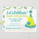 Invitation présente l'illustration originale d'un casquette de soirée à pois vert, bleu et jaune, avec le LET'S CÉLEBRATE dans une police amusante. Idéal pour une fête d'anniversaire, le réveillon du Nouvel An ou toute autre célébration. Ne vois-tu pas ce que tu cherches ? Vous avez besoin d'aide pour la personnalisation ? Contactez Rebecca pour avoir quelque chose conçu pour vous.
