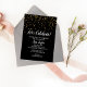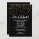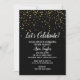 Invitation Fêtons les confettis dorés sur fond noir pour la r