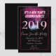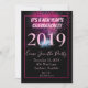 Personnalisez cette charmante invitation à la fête du Nouvel An 2019. Sur un fond noir, cet article affiche un fond de feu d'artifice rose avec tout votre texte écrit en police rose clair. Vos informations de fête. Commandez un set dès aujourd'hui !