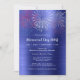 Invitations amis et famille pour un BBQ Memorial Day avec cette élégante invitation avec feux d'artifice en rouge, blanc et bleu sur un arrière - plan métallique bleu. Fonctionnalités arrière correspondant à l'arrière - plan. Parfait pour un Memorial Day, un 4 juillet, un Labor Day ou un parti à thème patriote. Facile à personnaliser avec des options personnalisées. Utilisez le bouton "Customiser" pour customiser le produit ou ajouter du texte.