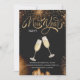 Réveillon du Nouvel An : un arrière - plan noir avec feux d'artifice en or et lunettes de champagne.