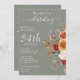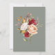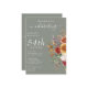 Ce design présente d'élégants éléments floraux dans les tons d'or, de bordeaux, de verts et de beige sur une police verte sauge pour une invitation à la fête d'anniversaire. Explorez la collection sur cette page pour trouver des éléments de coordination dans cette conception.