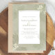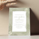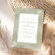 Cette conception présente une destination simple moderne boho, avec une feuille de feuilles tropicales vertes, une végétation côtière océanique de plage botanique, un feuillage de verdure de citron de sauge aquarelle, un minimaliste simple élégant minimal, une police de caractères calligraphiée classique rustique, un style de texte de typographie moderne, pour un mariage de resort d'île, une calligraphie chic moderne sophistiquée, une calligraphie de plage élégante avec dos monogramme couple mariée marié.
