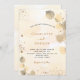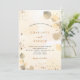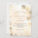 Un arrière - plan doré à l'eau décoré d'eucalyptus dorés et de poussière de parties scintillant en faux or. Personnalisez et votre nom et les détails de la cérémonie. Lettres noires et dorées. Retour : arrière - plan couleur or
