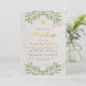 Invitation Feuillage de baptême Croix dorée fausse Calligraph
