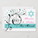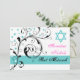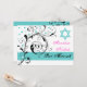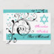 Invitation Feuille de défilement noir, blanc, aqua & Étoile d