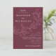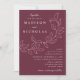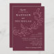 Invitations de mariage botanique avec vos noms et détails mariages en lettres blanches divisées par une vigne de feuilles esquissés avec un arrière - plan merlot. Les invitations de mariage élégantes se coordonnent avec notre collection de mariages Feuille en cascade.
