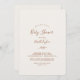 Cette invitation minimale de baby shower de crème de saumure aux feuilles est parfaite pour un baby shower de saumure. Le design se compose d'une simple silhouette de feuille de verdure en orange brûlé terreux sur un arrière - plan crème au style bohème minimaliste du désert.