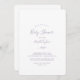 Cette invitation au baby shower pourpre et poussiéreux en feuille minimale est parfaite pour un baby shower boho. Le design se compose d'une simple silhouette de verdure en lavande claire violette au style minimaliste classique.