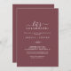 Ce bordeaux minime feuillet fêtons l'invitation est parfait pour une fête de fiançailles, mariage après la fête, la retraite, la remise des diplômes ou tout événement heureux. Le design bohème présente une silhouette de verdure simple dans une couleur de vin rouge foncé avec un style boho minimaliste classique.