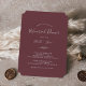 Cette invitation à la répétition bordeaux minimale est parfaite pour une répétition mariage de boho. Le design bohème présente une silhouette de verdure simple dans une couleur de vin rouge foncé avec un style boho minimaliste classique.