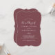 Ce faire-part de mariage de dos monogramme bordeaux à feuilles minimales est parfait pour un mariage de saumons. Le design bohème présente une silhouette de verdure simple dans une couleur de vin rouge foncé avec un style boho minimaliste classique. Personnalisez le dos avec les initiales de la mariée et du marié.