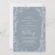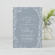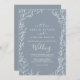 Cette carte faire-part de mariage minimaliste bleu feuille et blanc est parfaite pour un mariage élégant. Le design se compose d'une simple silhouette de verdure blanche sur un arrière - plan bleu poussiéreux au style minimaliste classique.