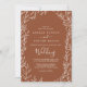 Cette carte de faire-part de mariage en terre cuite minimale est parfaite pour un mariage de saumons. Le design se compose d'une simple silhouette de feuille de verdure orangée brûlée et minimaliste de style bohème désert.