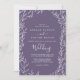 Cette carte minimale de faire-part de mariage pourpre de prune feuille est parfaite pour un mariage de saumons. Le design des tons de bijoux est composé d'une simple silhouette de feuilles verdoyantes dans un violet bleu foncé violet avec un style boho minimaliste.